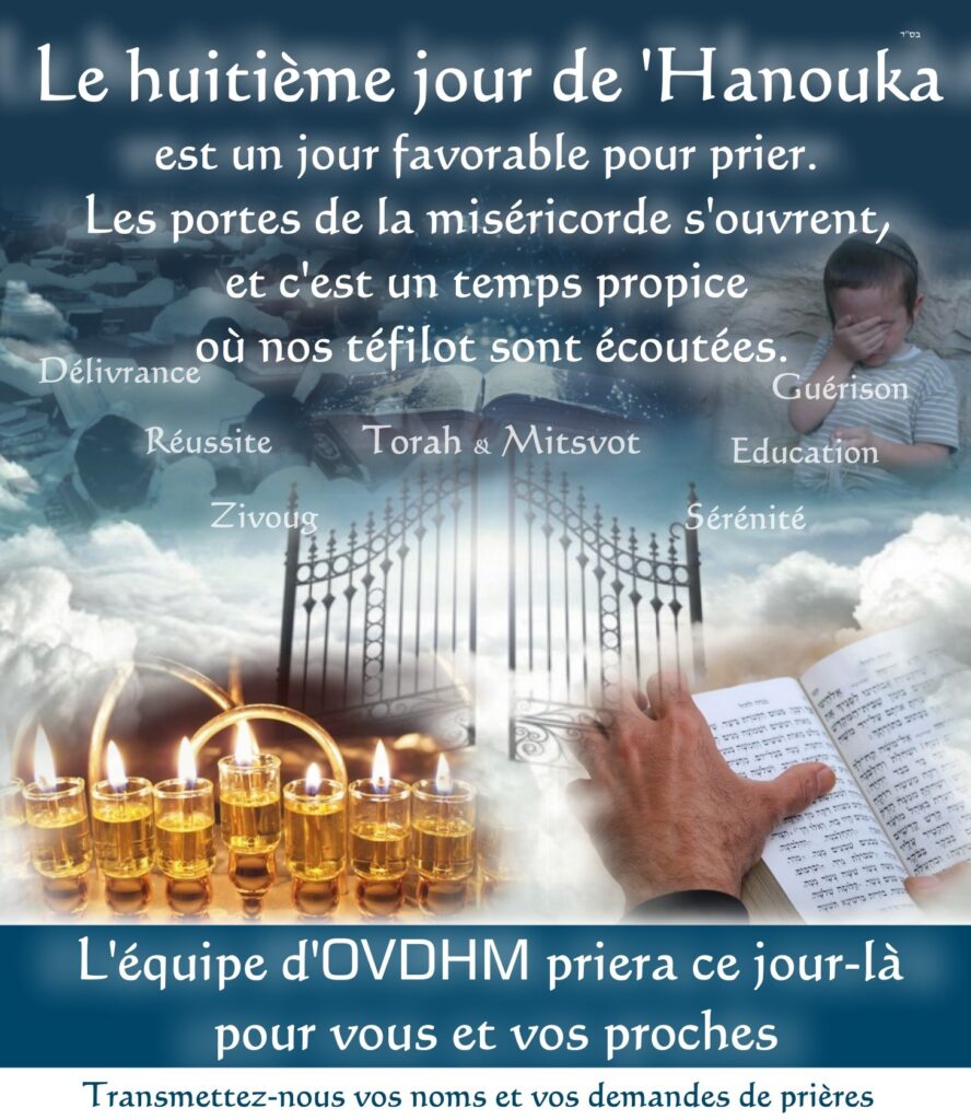 Le huitième jour de ‘Hanouka est un jour favorable pour prier.Les portes de la miséricorde…